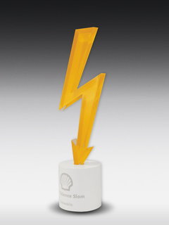 Dieser Award ist eine Kundensonderanfertigung. Der Challenge Award ist aus einer 300 x 300 mm großen Acrylplatte gefertigt, mit einer Dicke von 20 mm, um dem Award die gewisse Standfestigkeit zu gewehrleisten. Die Kanten sind jewils poliert, sodass hier keine matten, unschönenen Stellen entstehen. Der Acryl-Award ist rückseitig, vollflächig bedruckt und erhält damit eine gewisse Tiefe, von der vorderseitigen Betrachtung.