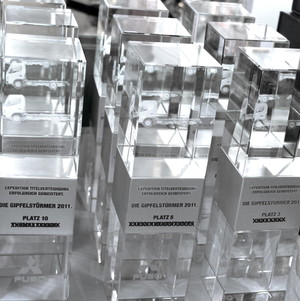 Diese Award ist eine exklusive Kundensonderanfertigung. Eine 3D Lasergravur im oberen Teil sowie eine Lasergravur im unteren Glasteil des Awards. Ein Aluminiumband mit geschwärzter Lasergravur rundet diesen individuellen Award ab.