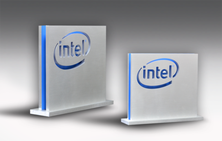 eine Auszeichnung mit Charakter. Dieser Award aus gebürsteten Aluminium, bringt das intel® Blau zum Leuchten.