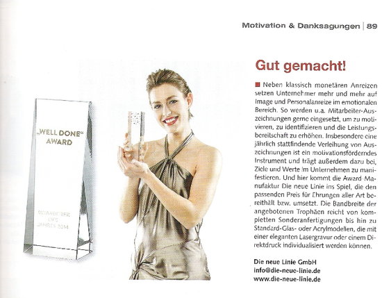 Erfahrung in der Auszeichnungs-Branche, es ist eine klare