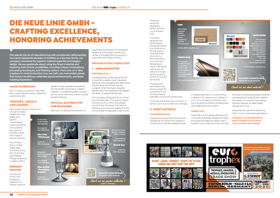 DNL ist einer der führenden europäischen Hersteller im Bereich Trophäen, Awards, Medaillen und Geschenken. Das Unternehmen ist mit seinen anspruchsvollen Qualitätsprodukten seit über 60 Jahren auf dem Markt tätig. Der Stammsitz in Bayern ist ein idealer Ausgangspunkt für die wirtschaftliche Weiterentwicklung und bietet viel Freiraum für kreative, innovative Produktideen. Das Unternehmen hat dank seiner hohen Fertigungstiefe ebenfalls ein industrielles Standbein und verarbeitet alle Materialien direkt im Haus.